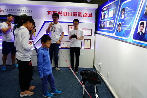 现场还展示了龙芯系列CPU,包括龙芯3A3000处理器芯片、面向龙芯3号处理器的芯片组龙芯7A1000桥片、龙芯3A3000笔记本;被誉为全球智能芯片领域先行者寒武纪开发的寒武纪智能处理器及板卡也在现场展示。VIPL慧眼-人脸特质测试、机械式计算机藏品展与动手练、Doctor AI、高通量计算机、物联网生态系统、天玑互联网舆情分析系统、大规模人群疏导预案模拟系统Guarder及其应用、可编程虚拟化路由器平台、超级计算机模拟平台等形式各样、内容丰富的科普项目,各个展项前都围满了人。