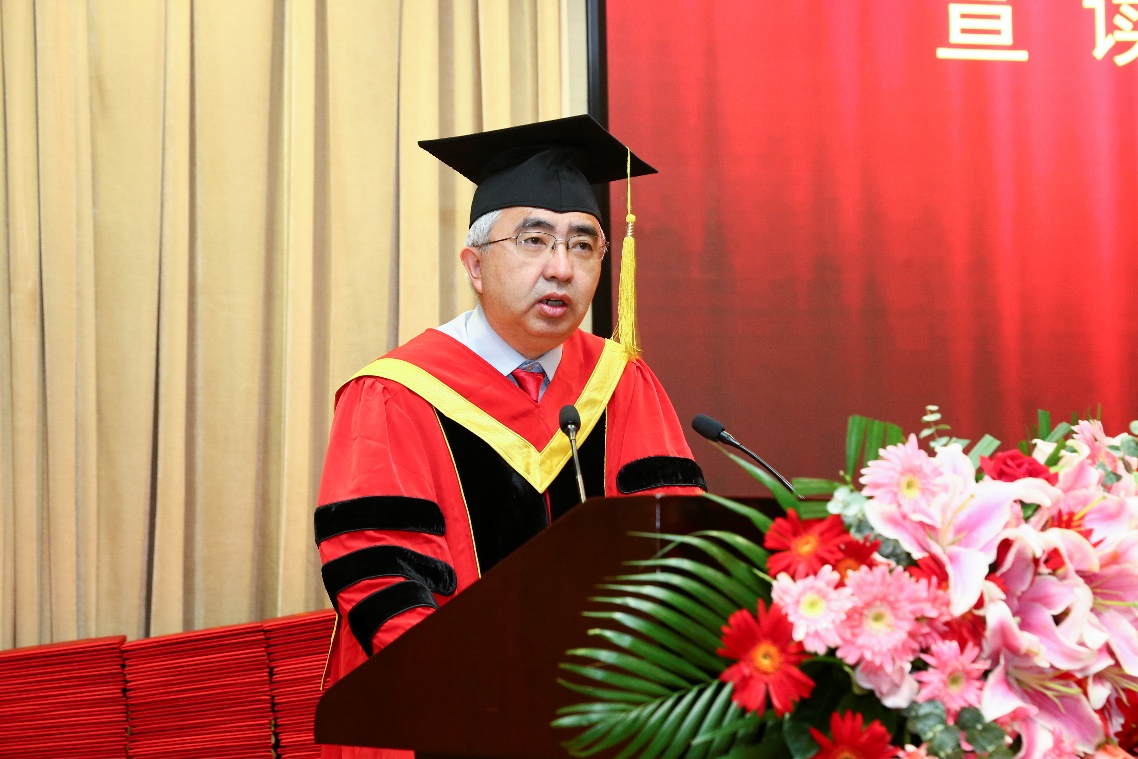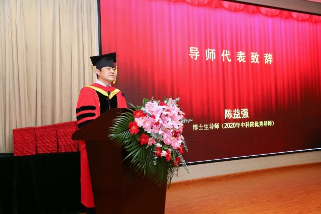 导师代表陈益强研究员从最近热播的连续剧《觉醒年代》谈起,寄语毕业生们努力成为科技觉醒时代的奋斗者。他希望同学们能做到三个坚持:坚持初心,不忘初心方得始终;坚持努力奋斗,雄关漫道真如铁,而今迈步从头越;同时,坚持适当焦虑,增强忧患意识,居安思危。新时代的青年要以实现中华民族伟大复兴为己任,不负时代,不负韶华。