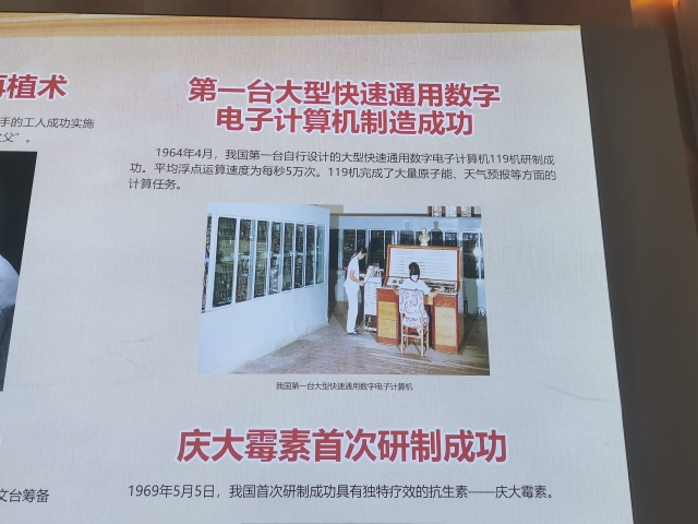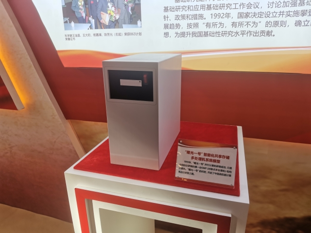 中科院计算所研制的103计算机、119计算机、“曙光一号”智能化共享存储多处理机系统、龙芯一号等成果也以实物、模型或展板的形式在百年回望展区中亮相。