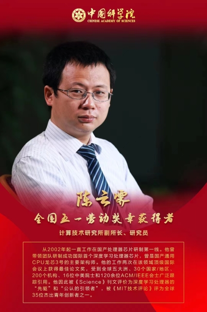 【综合新闻】计算所陈云霁荣获2022年全国五一劳动奖章
